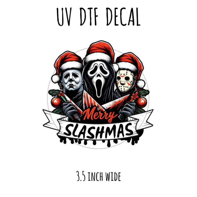 #644 Merry Slashmas Horror Christmas- 3.5 inch wide UV DTF decal