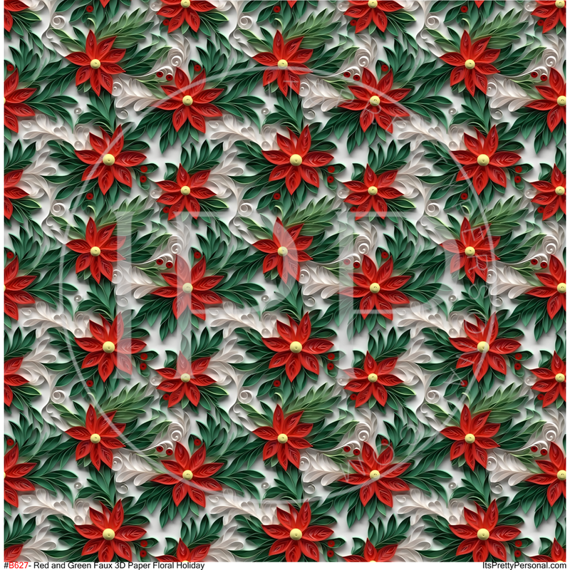 #B627 Red and Green Faux 3D Paper Floral Holiday- 12x12 Pattern Vinyl
