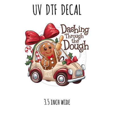 #635 Gingerbread Dashing Through The Dough- 3.5 inch wide UV DTF decal