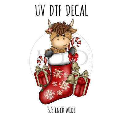 #636 Highland Cow Stocking Christmas- 3.5 inch wide UV DTF decal