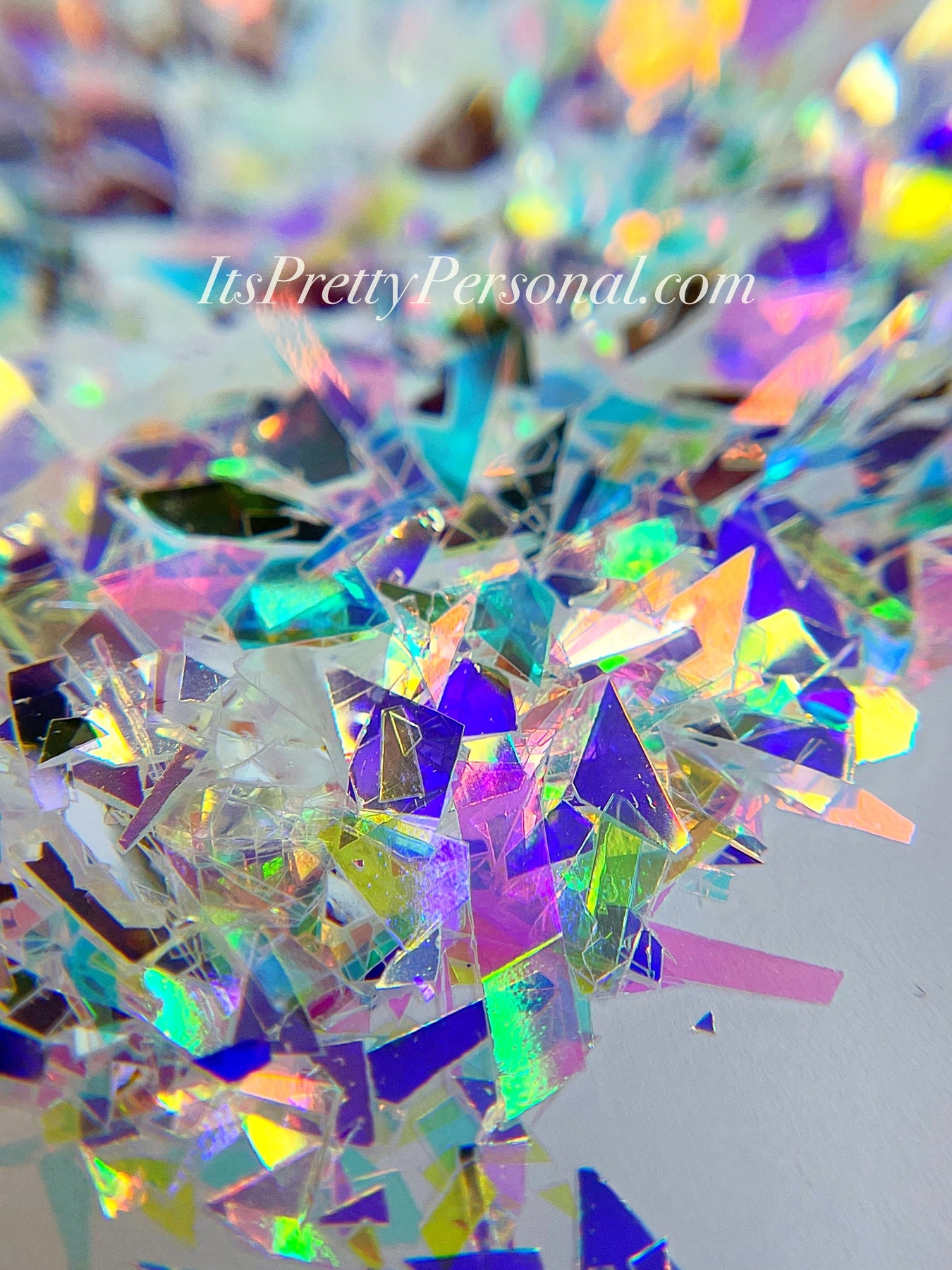 Each shaker is packed with large, shattered polyester film opal flakes that reflect light in the most dreamy, multidimensional way — think holographic shards, icy opal flashes, and iridescent confetti brilliance all in one.