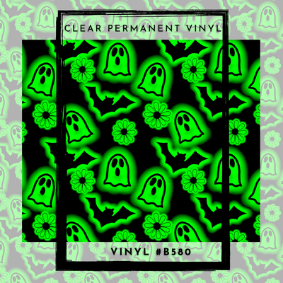 #B580- CLEAR- Green Glow Ghost Spooky- 12x12 Pattern Vinyl