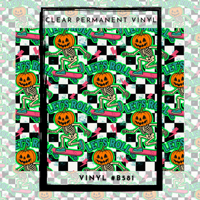 #B581- CLEAR- Green Glow Pumpkin Let's Roll- 12x12 Pattern Vinyl