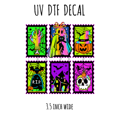 #605 Neon Halloween Spooky Stamps - 3.5 inch wide UV DTF decal