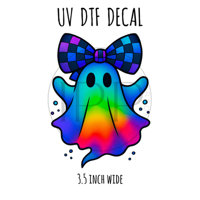 #611 Rainbow Bling Bow Ghost- 3.5 inch wide UV DTF decal