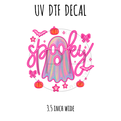 #610 Neon Halloween Spooky Pink Ghost- 3.5 inch wide UV DTF decal