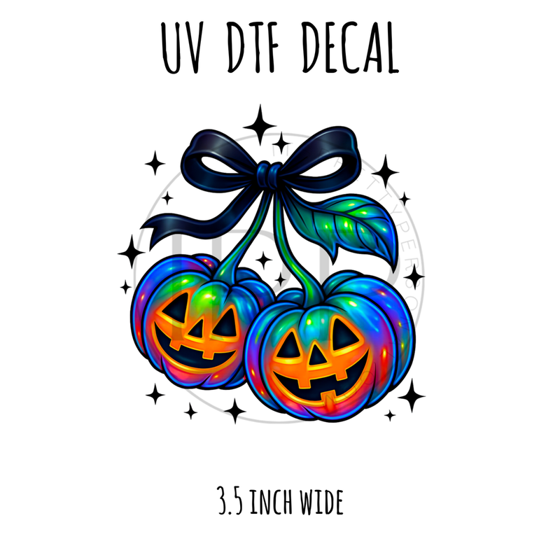 #608 Neon Halloween Pumpkin Cherries- 3.5 inch wide UV DTF decal