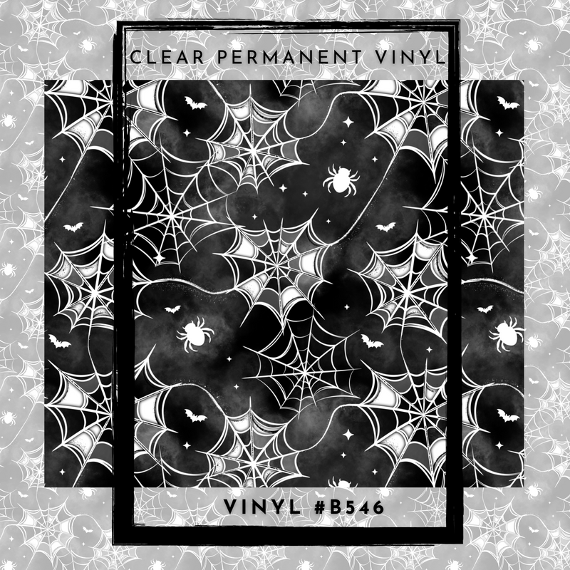 #B546- CLEAR Spooky Black White Spider Web- 12x12 Pattern Vinyl