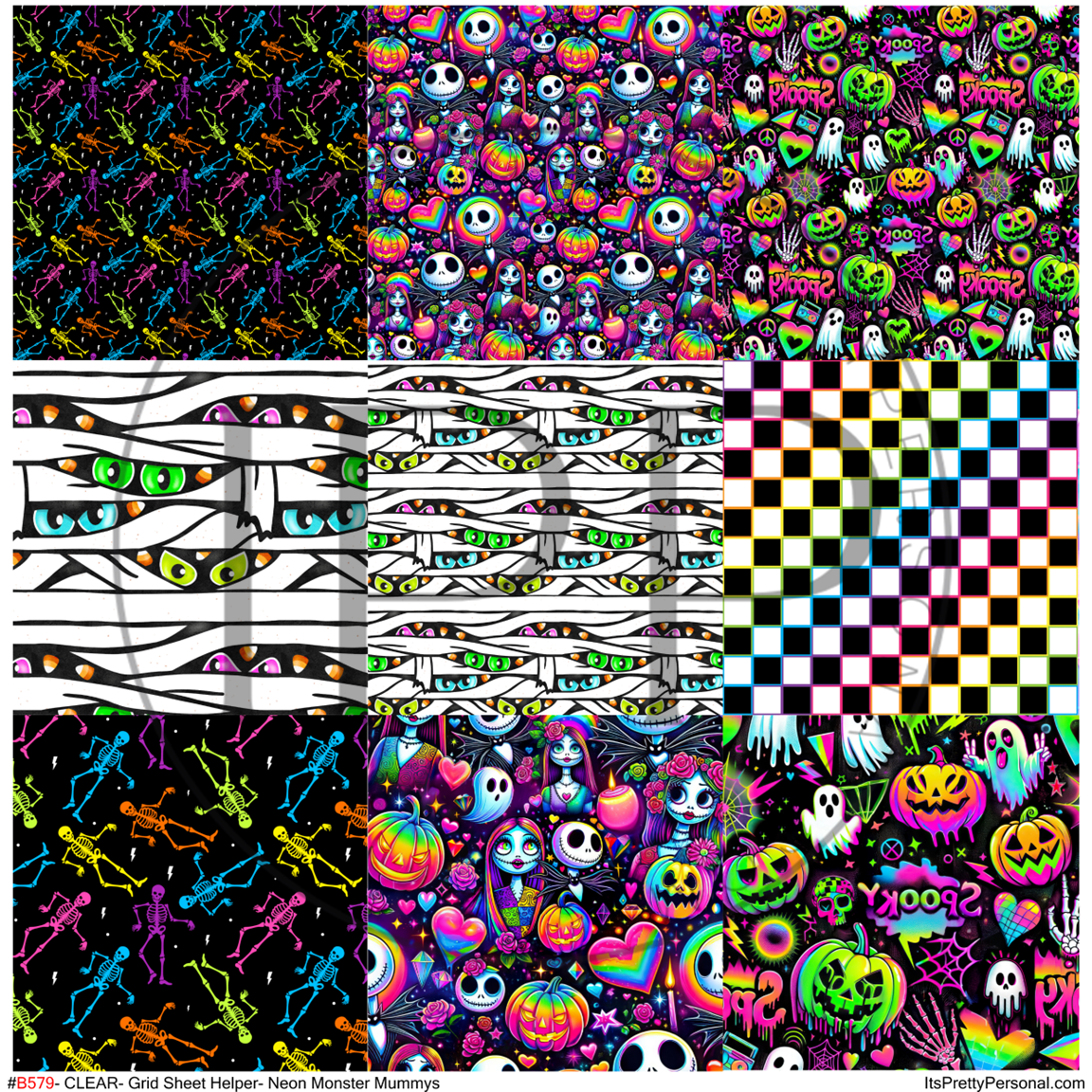 #B579-CLEAR Small Scale Ornament Grid Helper-Neon Monster Mummy-12x12 CLEAR Pattern Vinyl