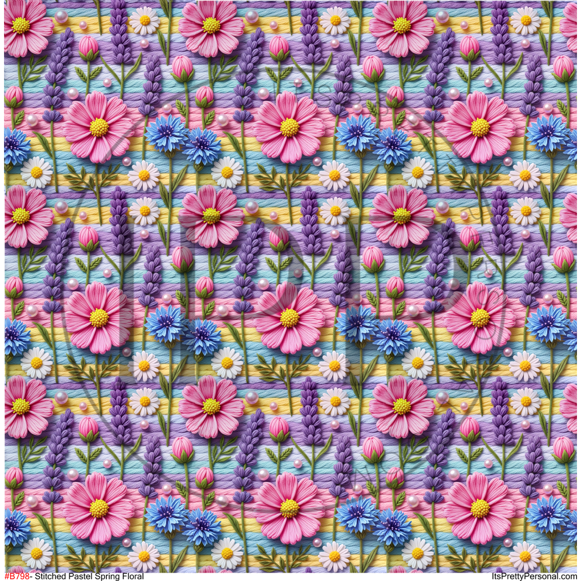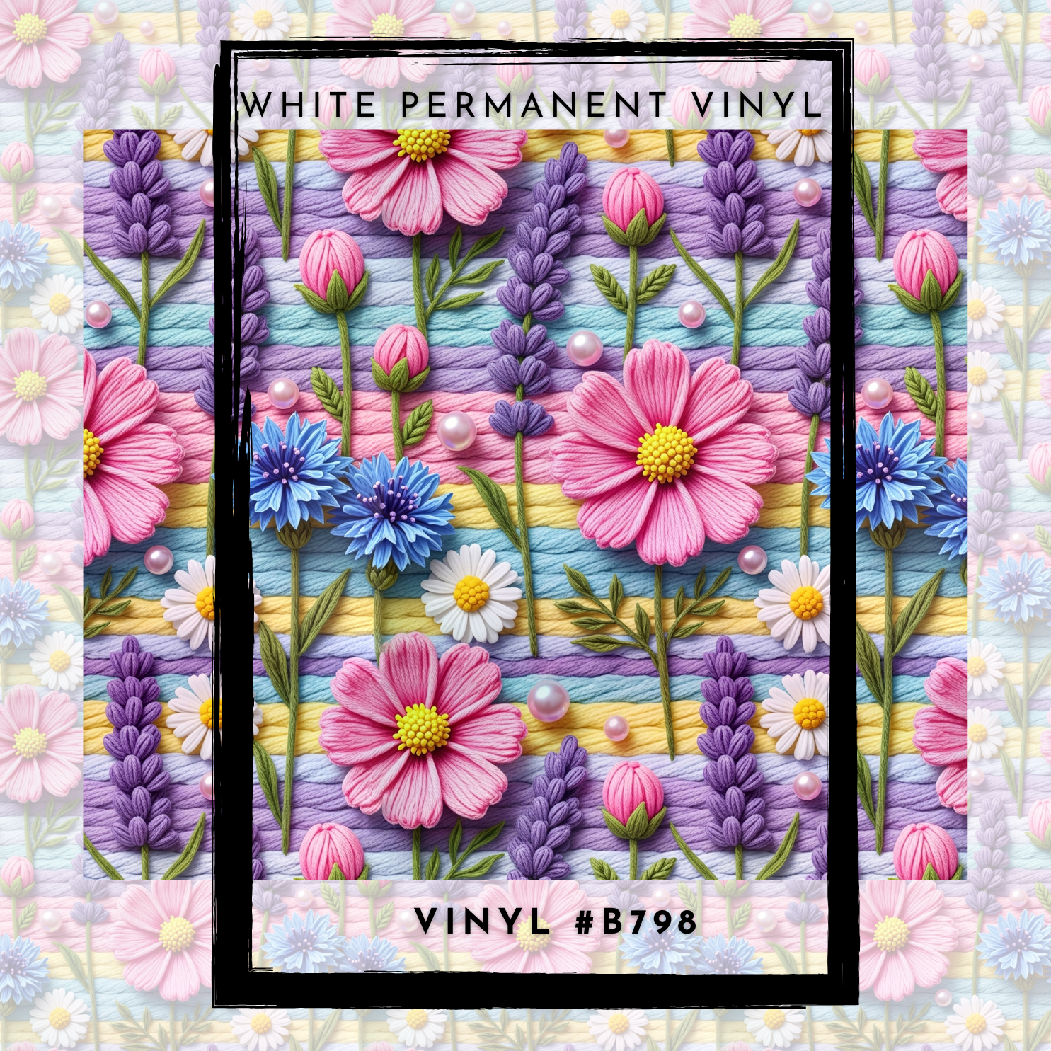 #B798- Stitched Pastel Spring Floral -12x12 Pattern Vinyl