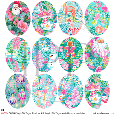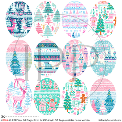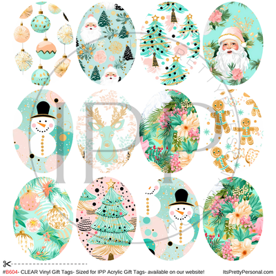#B604-CLEAR Vinyl Gift Tag Helper Sheet-Mint and Pink Playful Christmas-12x12 CLEAR Pattern Vinyl