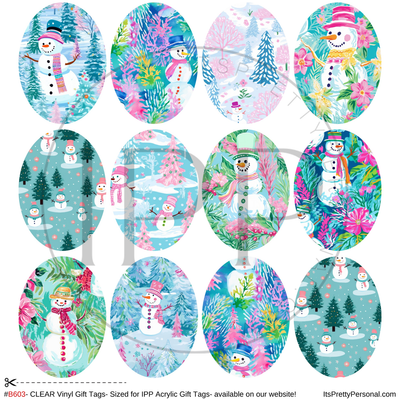 #B603-CLEAR Vinyl Gift Tag Helper Sheet-Snowman Playful Christmas-12x12 CLEAR Pattern Vinyl