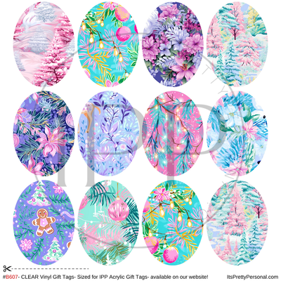 #B607-CLEAR Vinyl Gift Tag Helper Sheet-Pastel Winter-12x12 CLEAR Pattern Vinyl