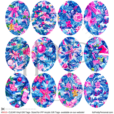 #B610-CLEAR Vinyl Gift Tag Helper Sheet-Blue Pink Christmas-12x12 CLEAR Pattern Vinyl
