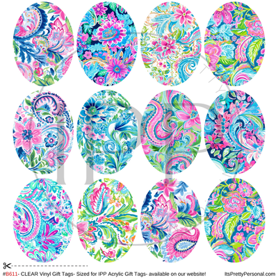 #B611-CLEAR Vinyl Gift Tag Helper Sheet-Mint Pink Green Floral Patterns-12x12 CLEAR Pattern Vinyl