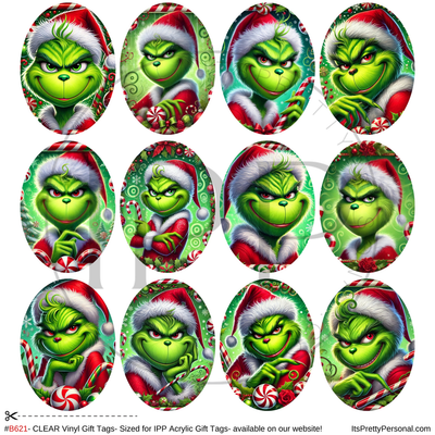 #B621-CLEAR Vinyl Gift Tag Helper Sheet-Mean Green Guy-12x12 CLEAR Pattern Vinyl