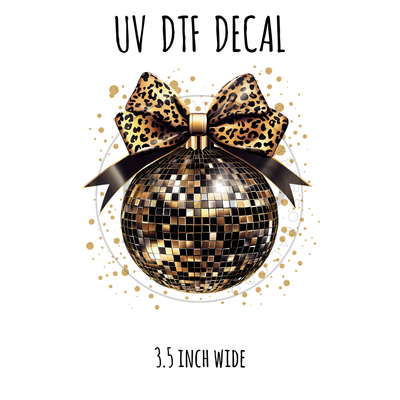 #677 Disco Ball Leopard Bow- 3.5 inch wide UV DTF decal