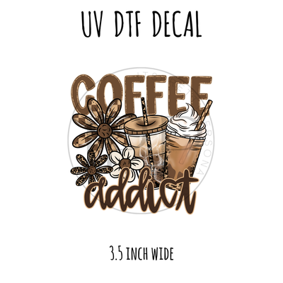 #679 Leopard COFFEE ADDICT- 3.5 inch wide UV DTF decal