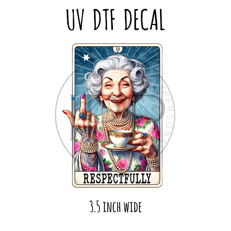 #231-Resectfully Old Lady Card- 3.5 inch wide UV DTF decal