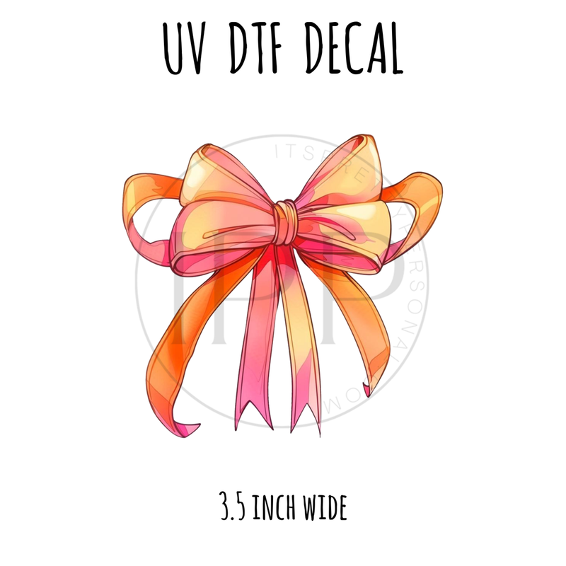 #430 Pink Orange Bow- 3.5 inch wide UV DTF decal