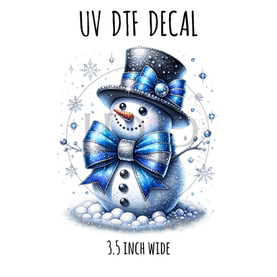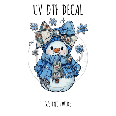 #621 Blue Winter Snow Man- 3.5 inch wide UV DTF decal