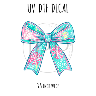 #624 Pastel Winter Snowflake Bow- 3.5 inch wide UV DTF decal
