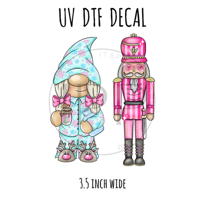 #627 Pastel Jammies Gnome Pink Nutcracker- 3.5 inch wide UV DTF decal