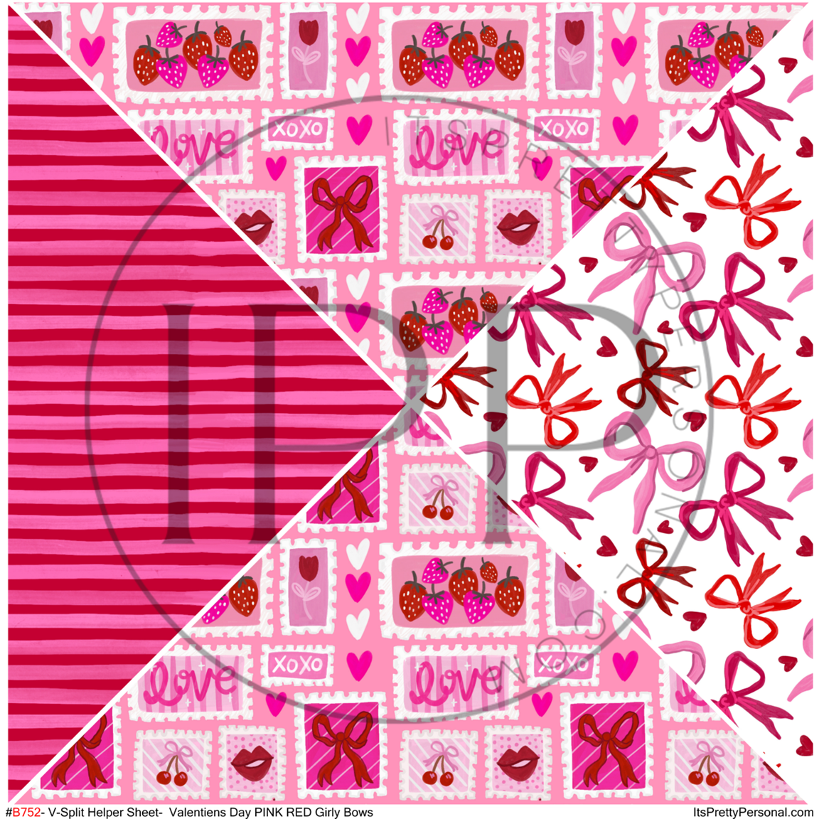 #B752-V-Split Helper-Valentines Day PINK RED Girly Bows- 12x12 Pattern Vinyl