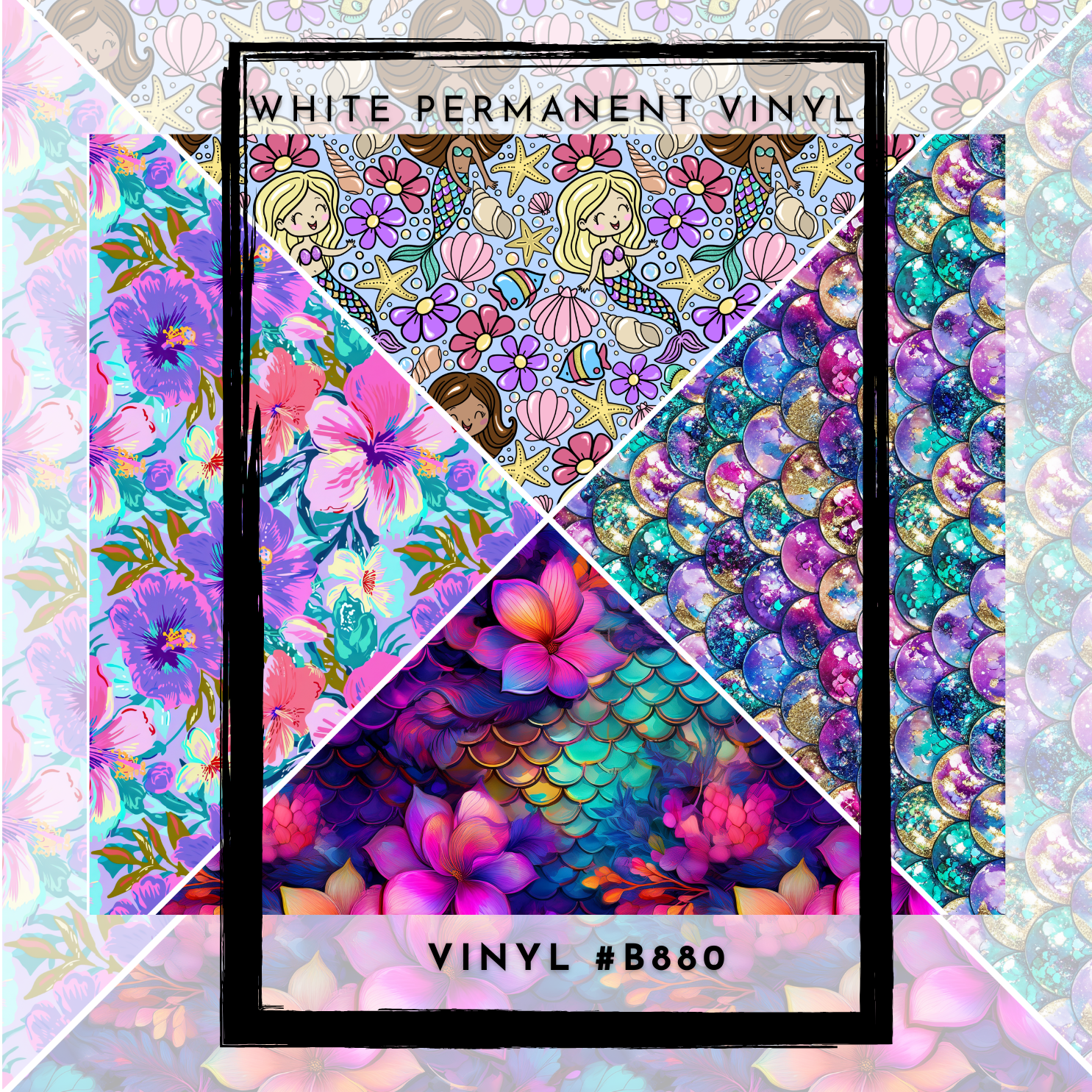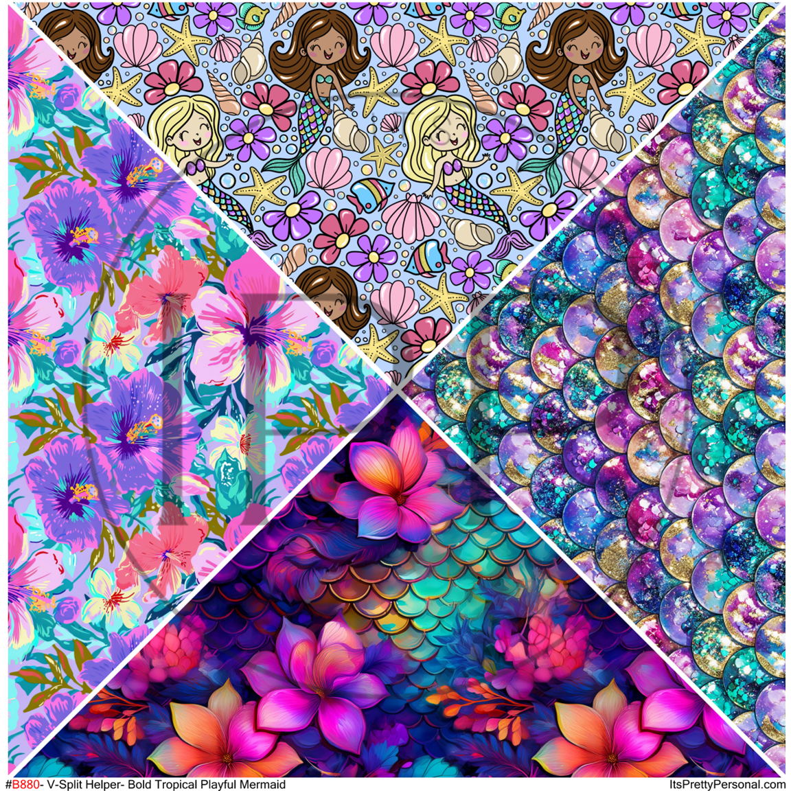 #B880-V-Split Helper- Bold Tropical Mermaid- 12x12 Pattern Vinyl
