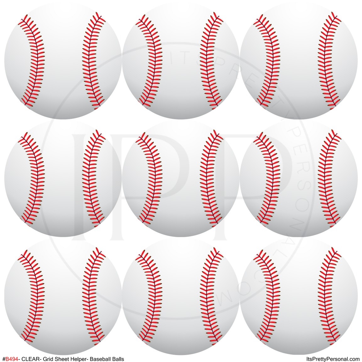 #B494-CLEAR Small Scale Ornament Grid Helper-Sports Baseball Balls- 12x12 CLEAR Pattern Vinyl