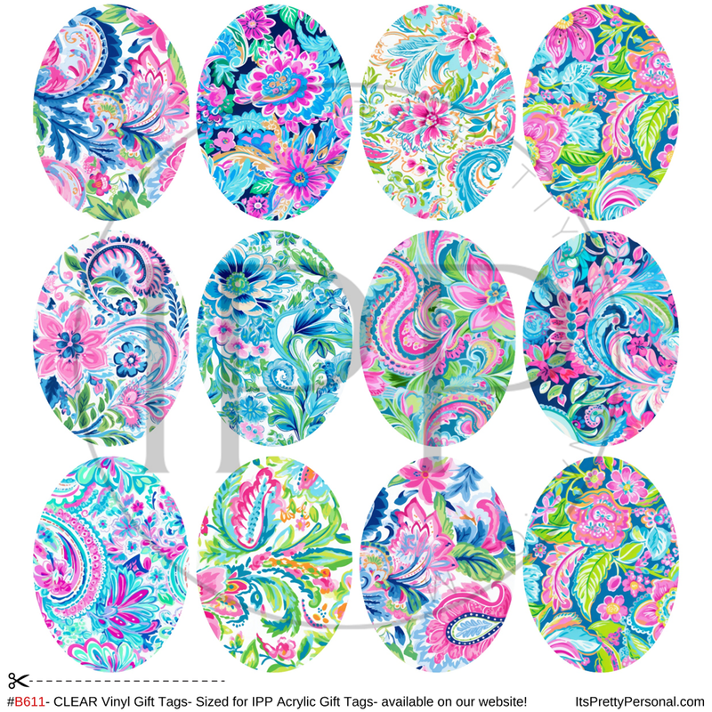 #B611-CLEAR Vinyl Gift Tag Helper Sheet-Mint Pink Green Floral Patterns-12x12 CLEAR Pattern Vinyl